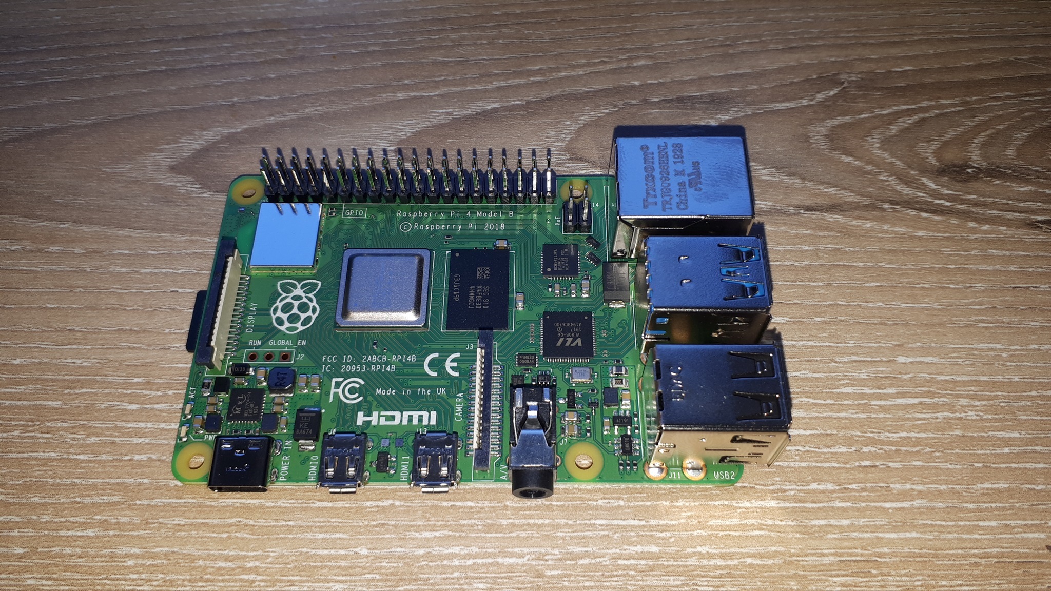 | Einplatinen- Computer | Raspberry PI Model B 4GB RAM Das bis Mai 2020 "größte" Modell der Raspberry Pi-Reihe. Aktuell gibt es sogar 8GB-Modelle. Hier das Modell mit 4GB, noch ohne Kühlkörper und ohne Gehäuse. Ins Gehäuse gepackt und Linux auf SD-Karte installiert. Aktuell im Karton. |